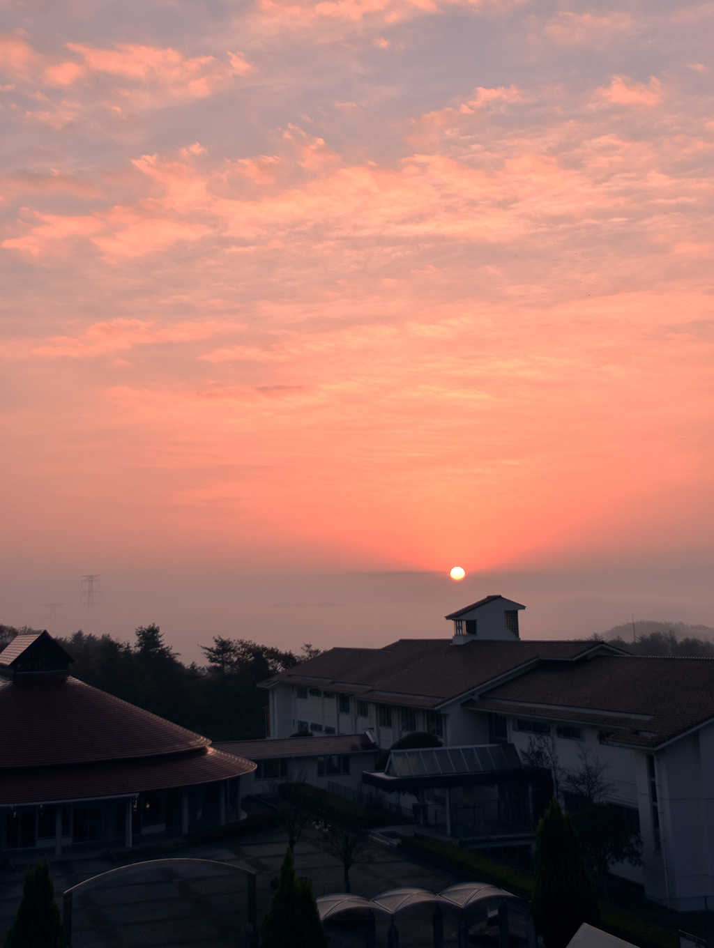 写真では分かりにくいのですが、食堂・女子寮の向こう側に雲海が広がっています!