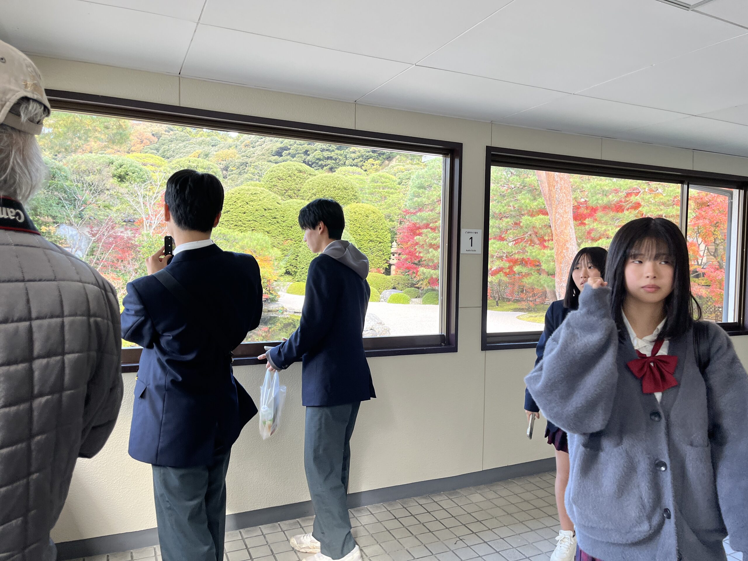 「一本一本の松の形まで計算されているように感じた」「写真や教科書で見るのと迫力が全然違った」などの声が聞かれ、日頃の授業で学んだ樹木の管理や景観づくりの視点から、庭園を細かく見る姿が印象的でした。