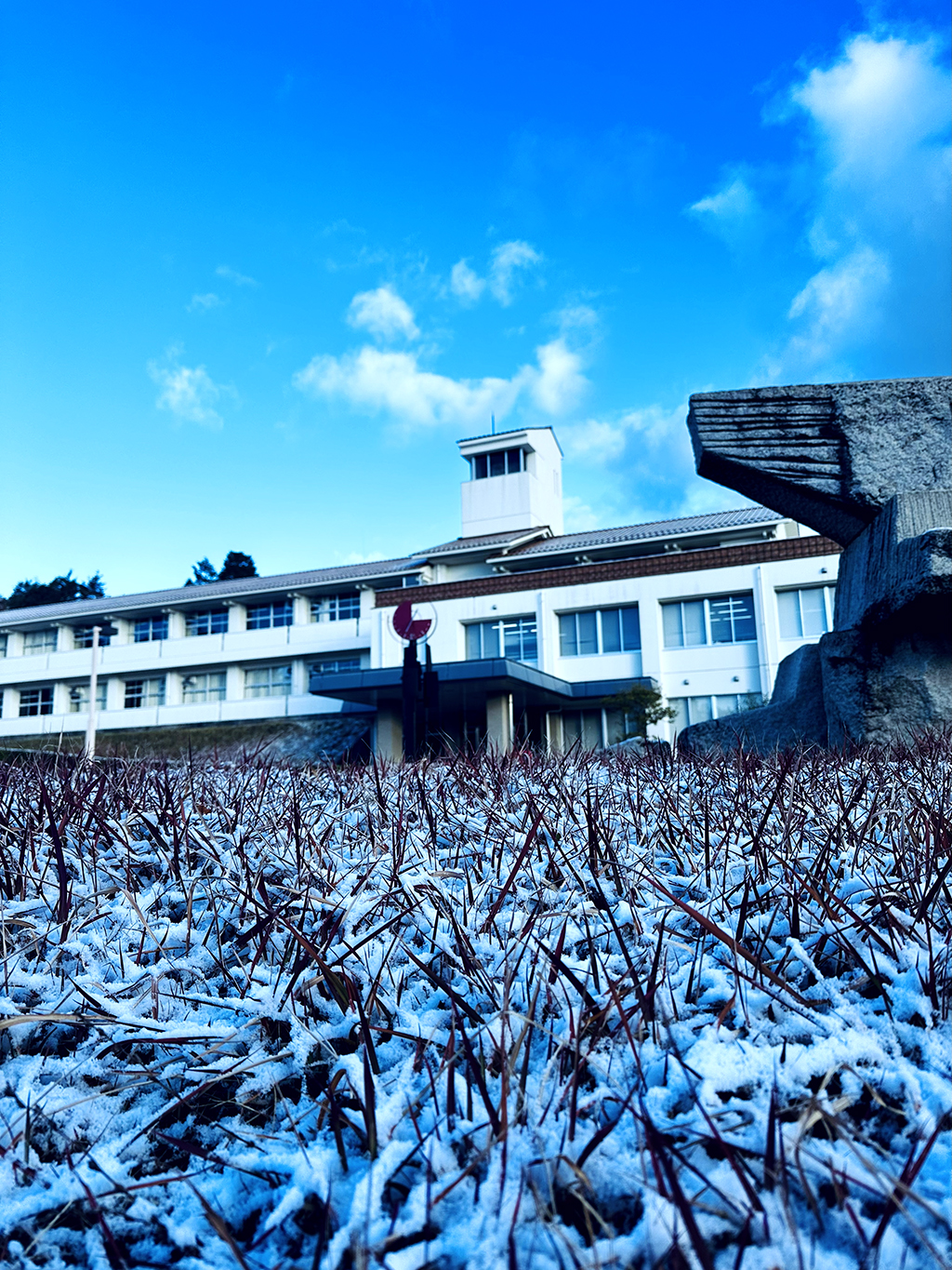 今朝は吉備高原もグッと冷えて氷点下になりました。校内も薄っすらと雪景色に包まれて幻想的な雰囲気でした。
