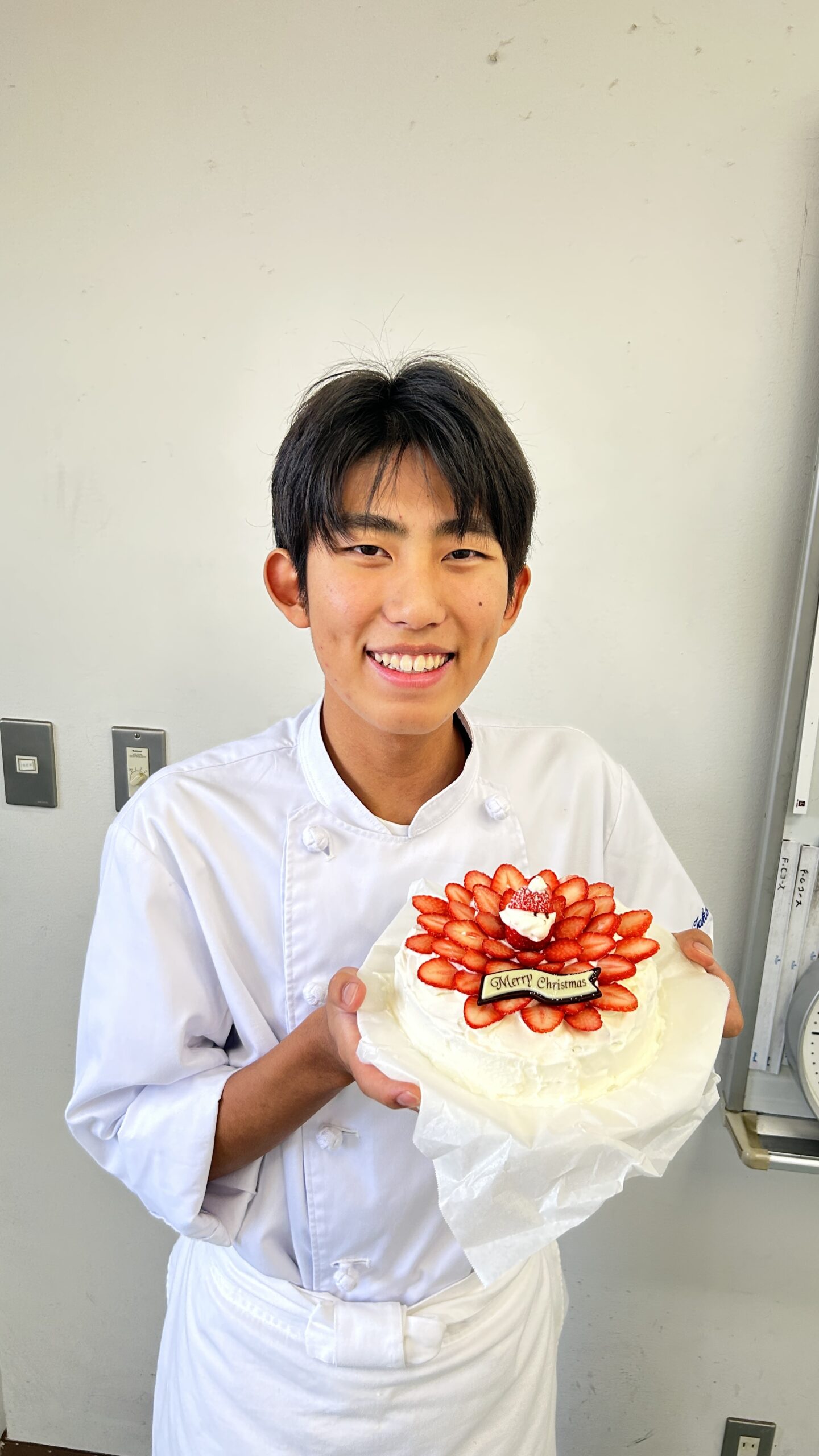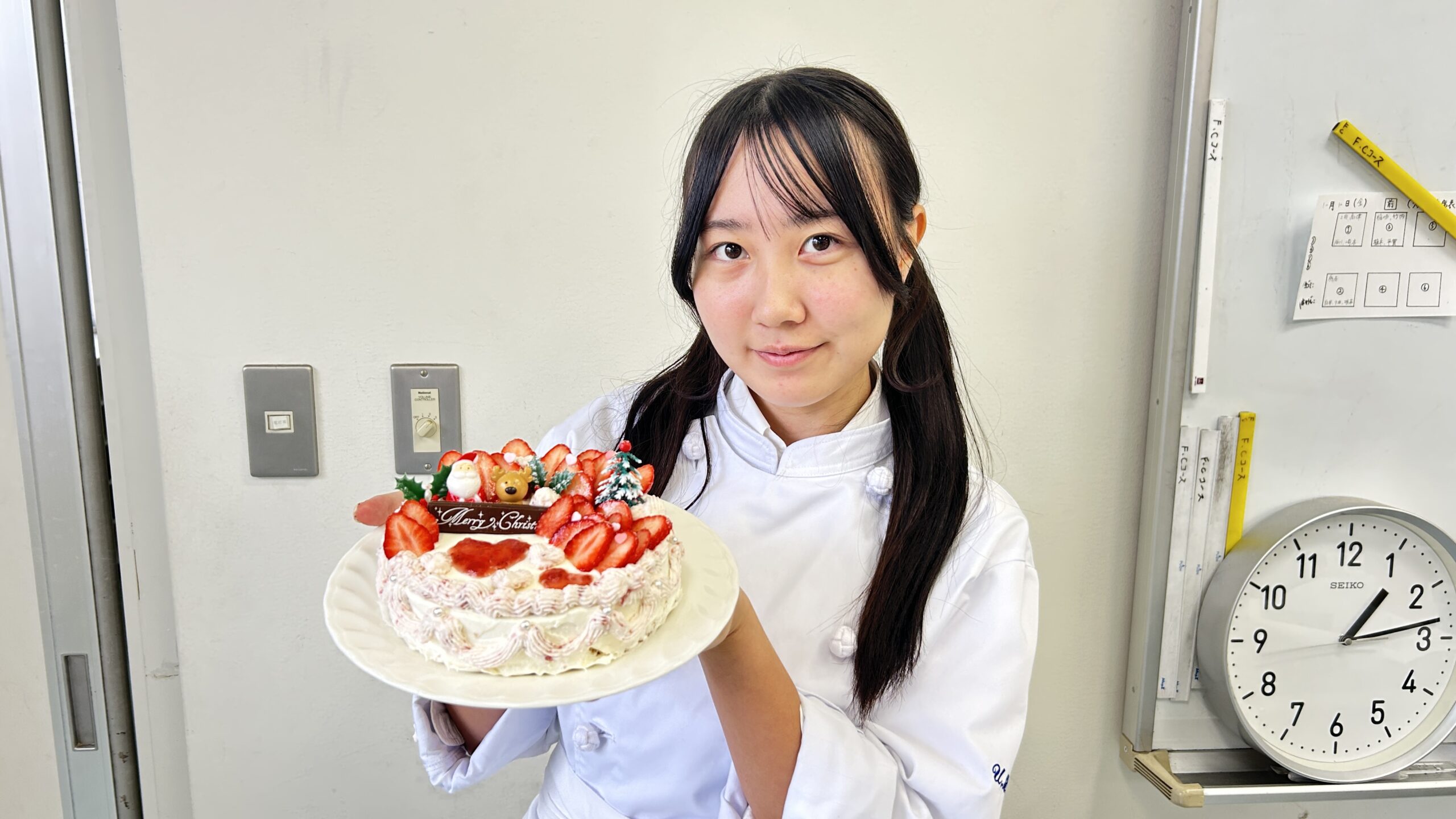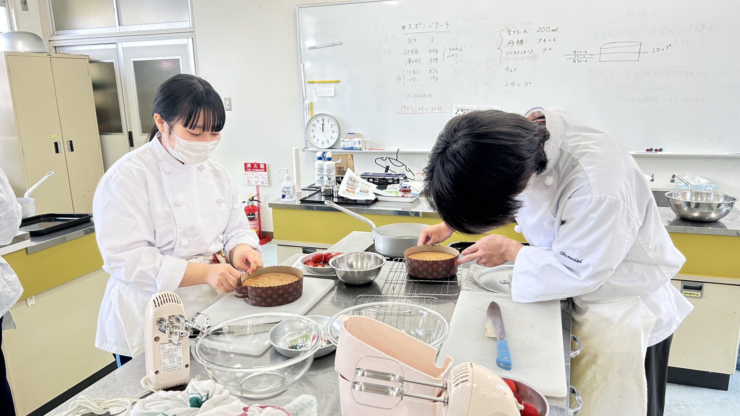 生活デザインコースの授業で、実技試験も兼ねたクリスマスケーキ作りに挑戦しました。