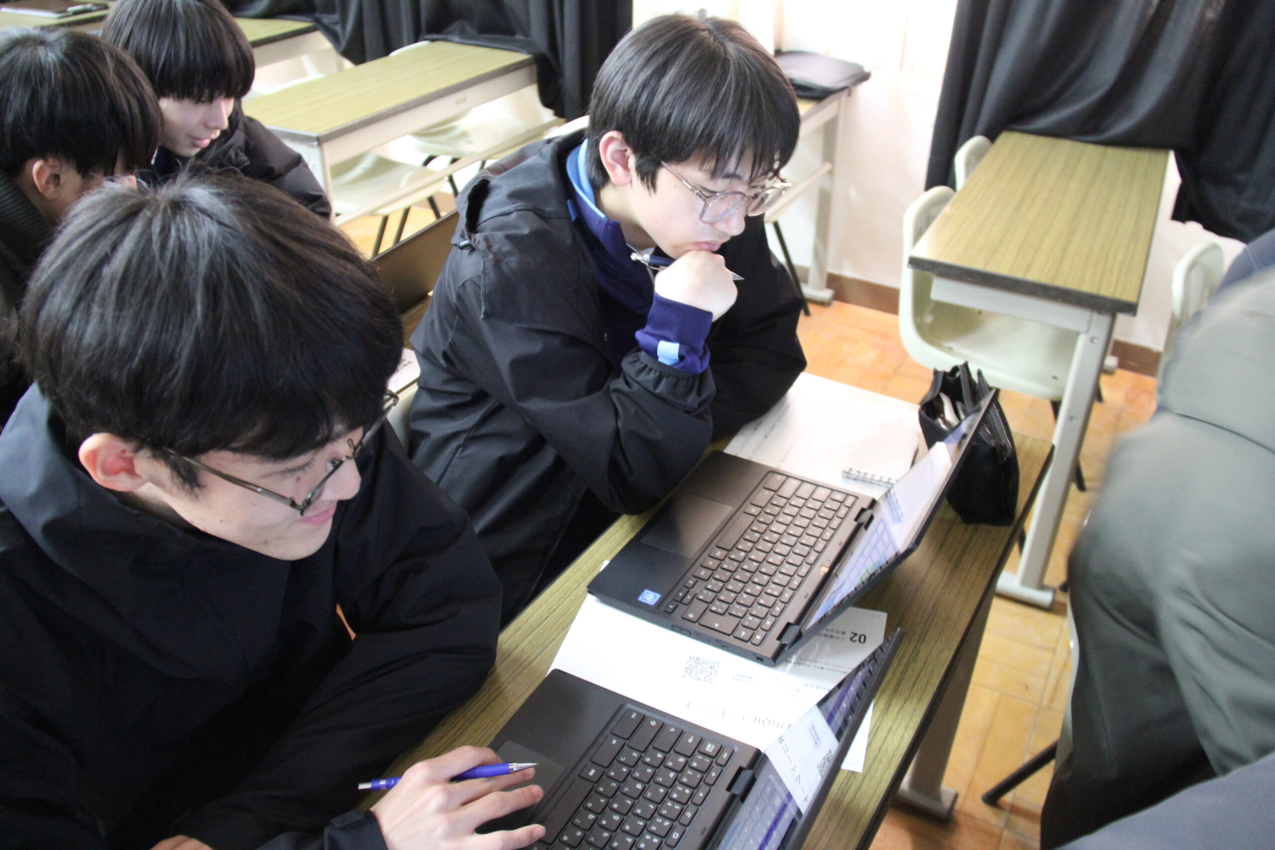 続いて後半はChromebookを活用し、専用サイトを用いて各自が気になる進学先をじっくり調べました。その結果、学部・学科の学びの内容、取得できる資格、入試方式、学費、卒業後の進路など、複数の観点から情報を集め、比較しながら整理する姿が見られました。また、調べた内容をメモにまとめたり、複数校を行き来しながら条件を照らし合わせたりと、主体的に情報収集を進める様子も印象的でした。