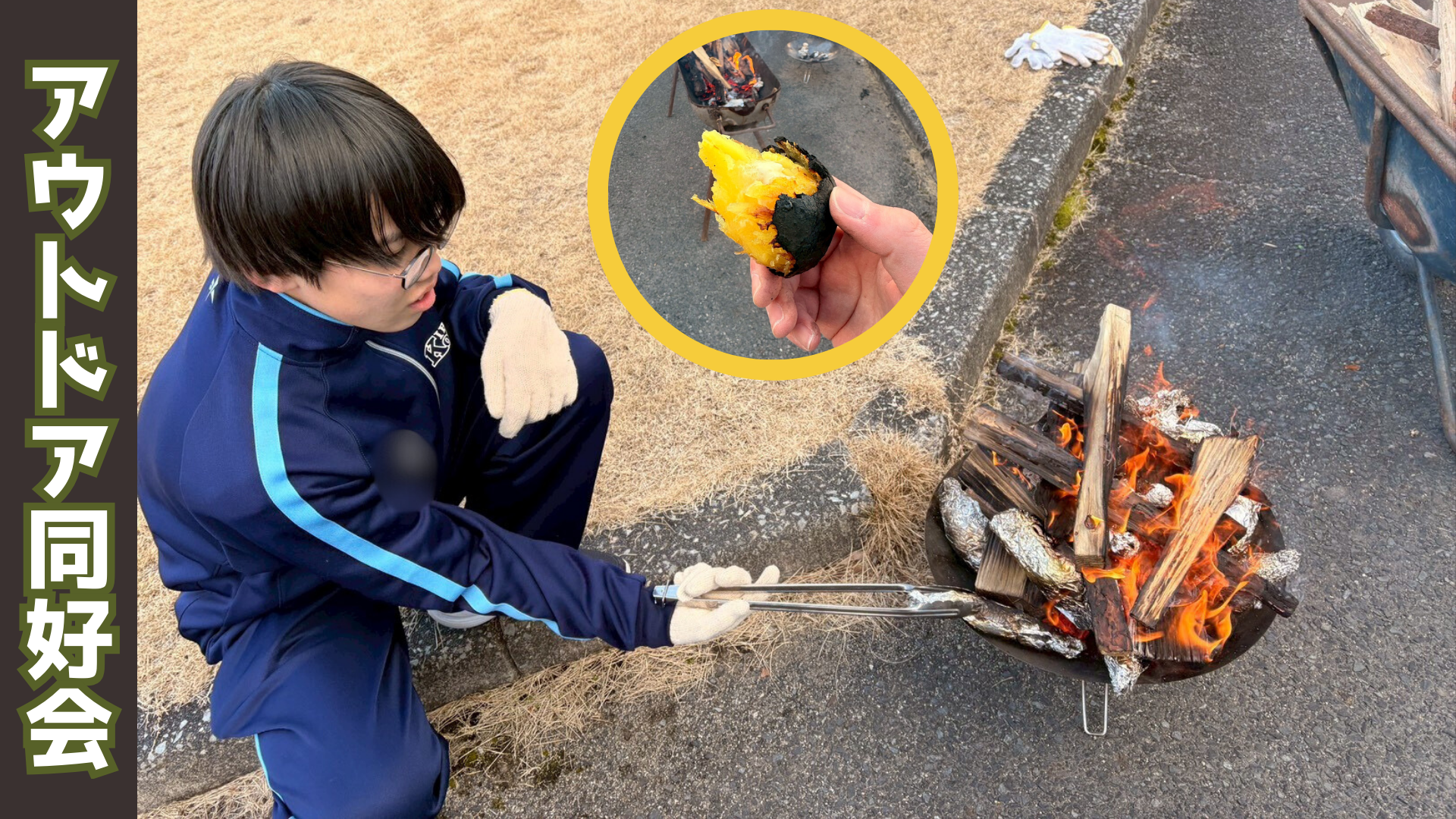 安全面を最優先に判断し、焚き火は別の方法で着火しました。火が安定してから、アルミホイルに包んださつまいもを焚き火の中へ。教員が常に全体を見守る体制のもと、約50分間じっくりと焼き上げました。