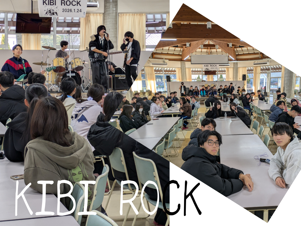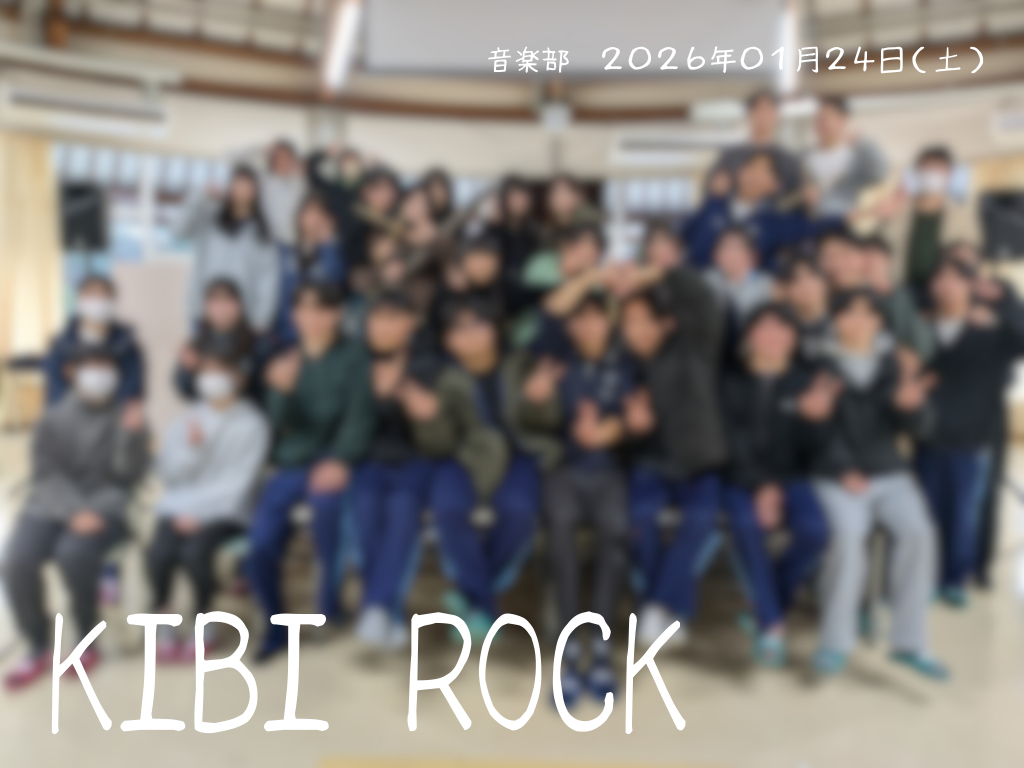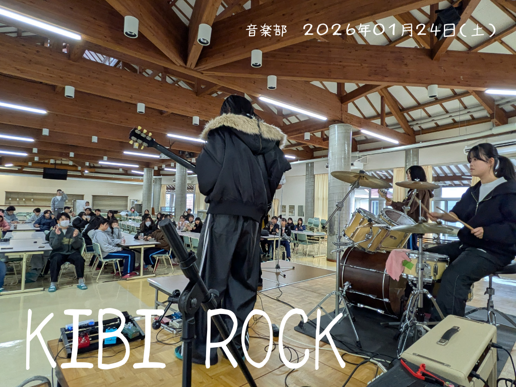 1月24日(土)、音楽部主催の校内イベント「KIBI ROCK」を食堂にて開催しました。本イベントは、音楽部にとって3年生の3年間をねぎらい、感謝を伝える「3年生を送る部会」としての位置づけでもあり、部員それぞれの思いが詰まったステージとなりました。