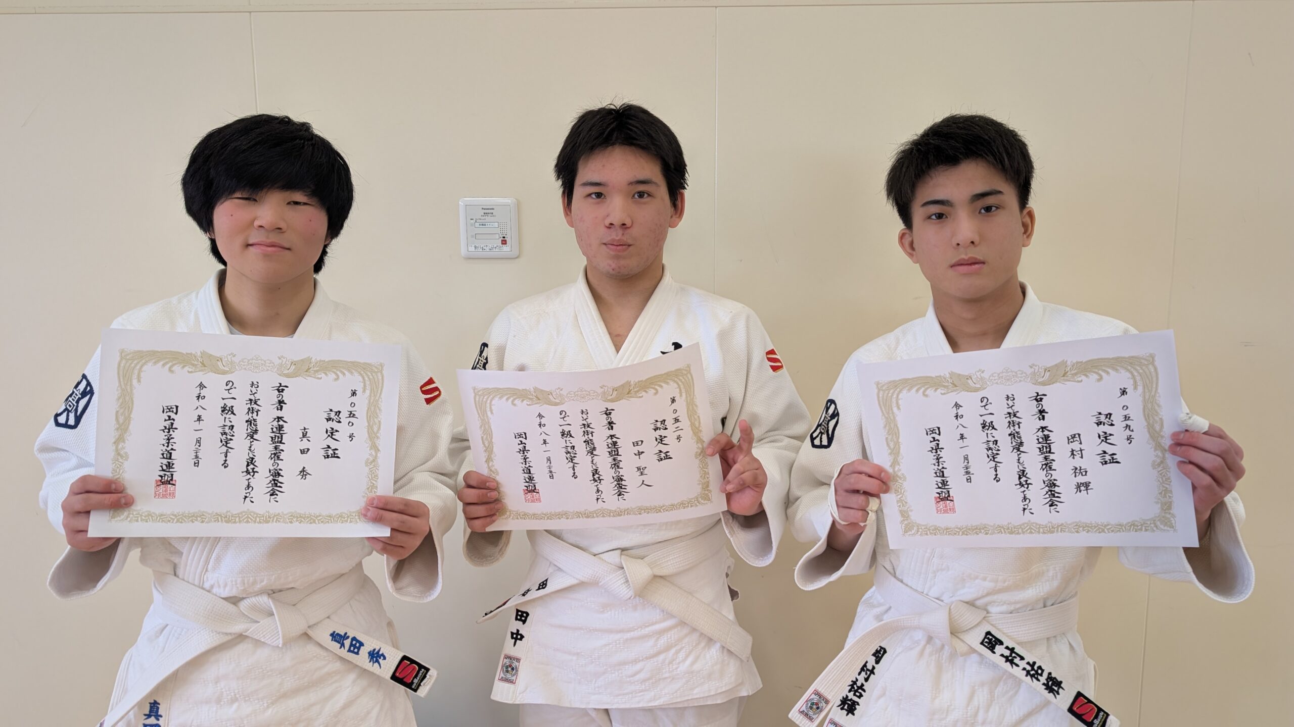 岡山武道館にて柔道昇級試験を部員3名が受験致しました。