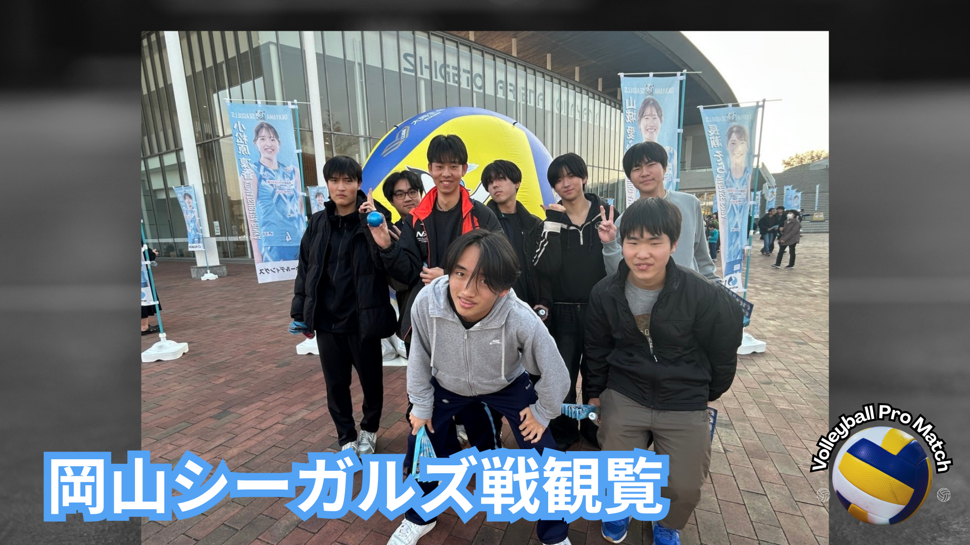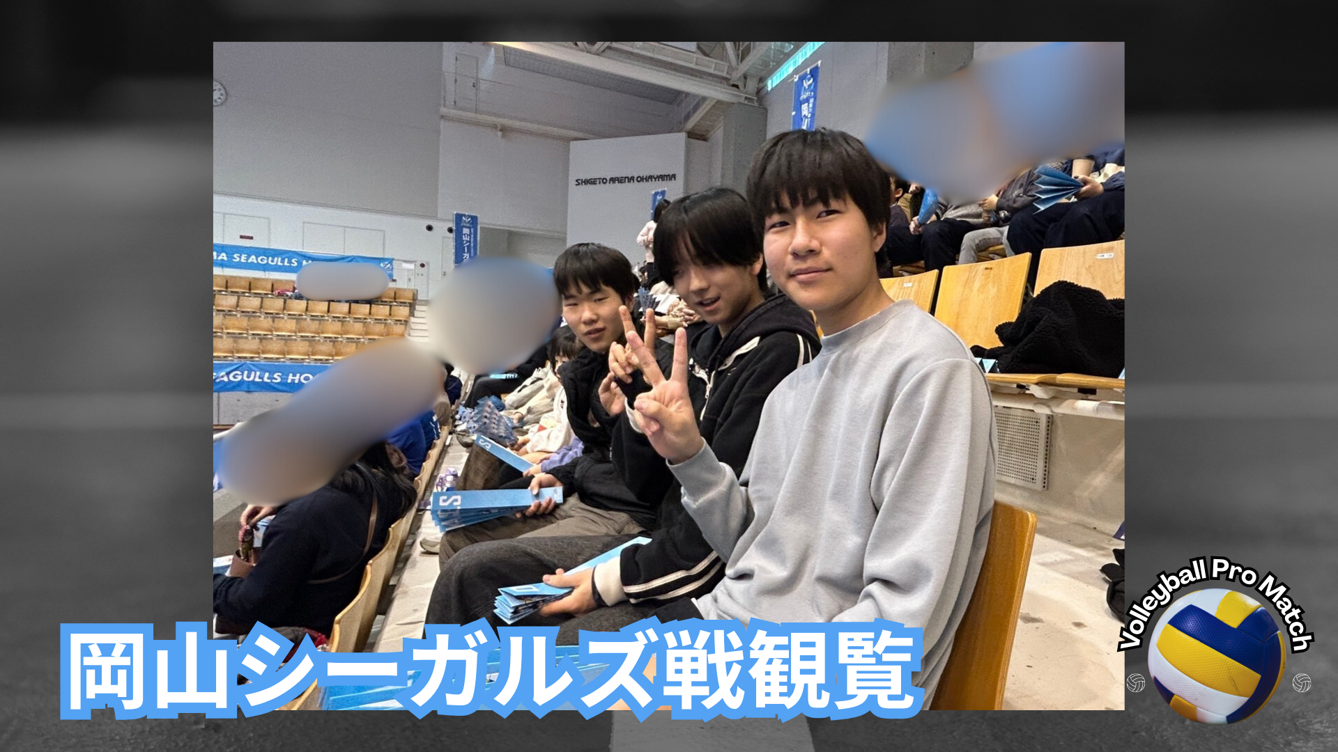 2月15日(日)、バレーボール部は、岡山シーガルズの公式戦にご招待いただき、プロの試合を観戦させていただきました。日頃の練習では味わえない、会場全体の熱気と迫力あるプレーに、部員たちは終始大興奮。コートに立つ選手たちの集中力や、スピード感あふれるラリーに、思わず声が出る場面もありました。