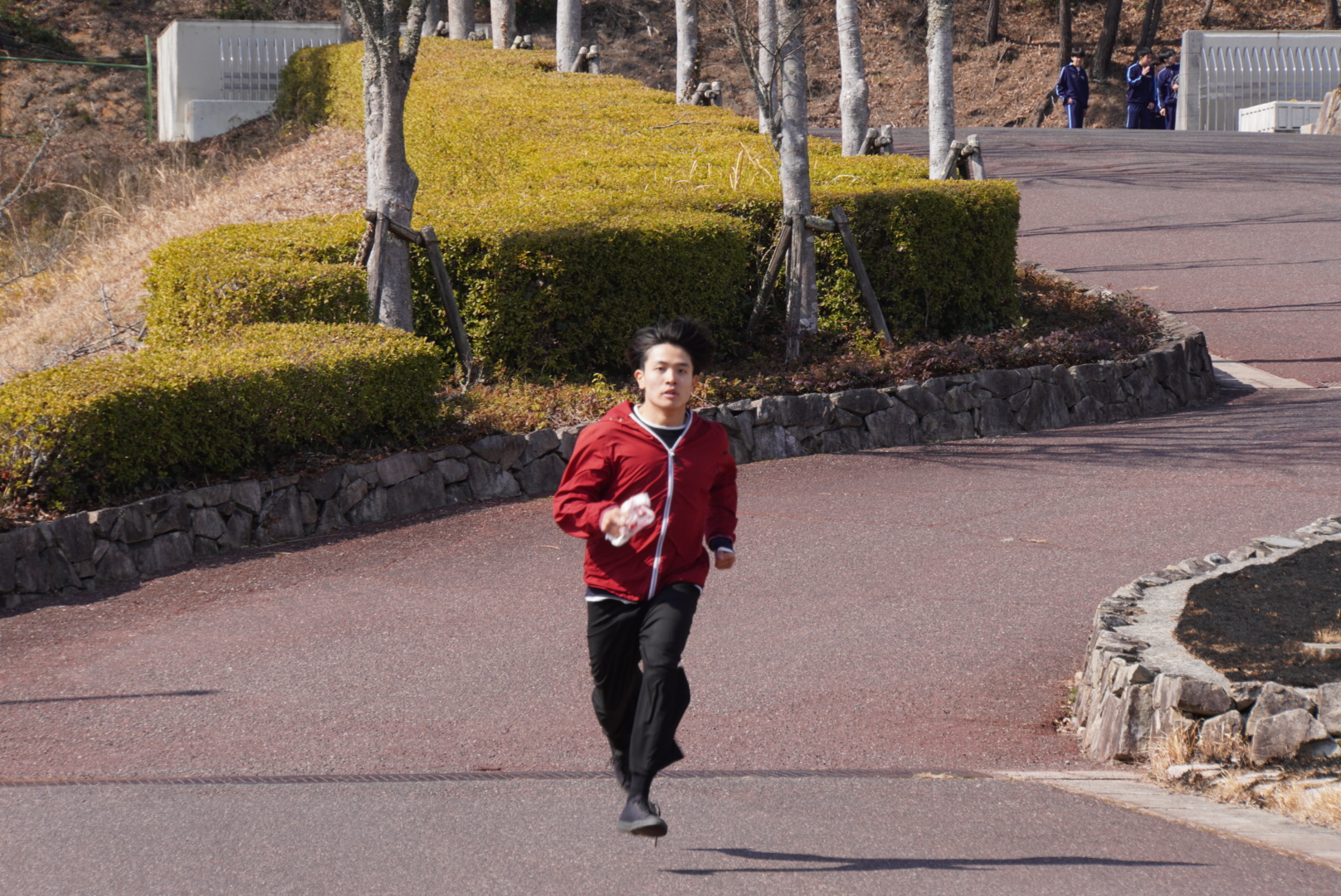 生徒たちはタスキを繋ぎ、外周を走ります。