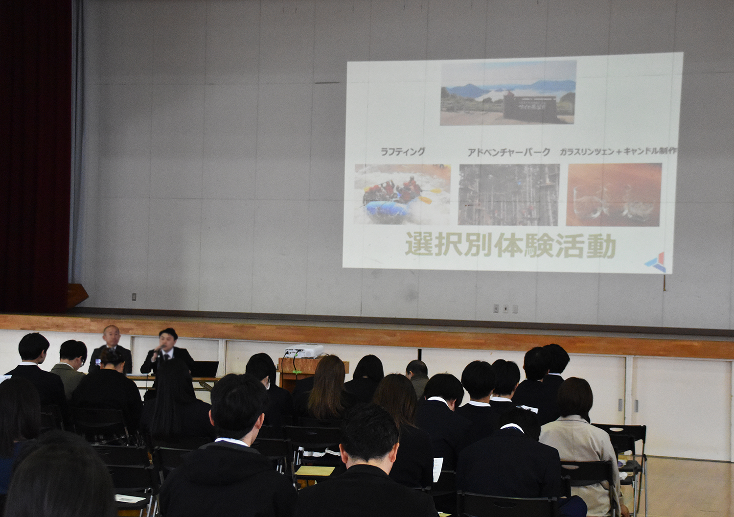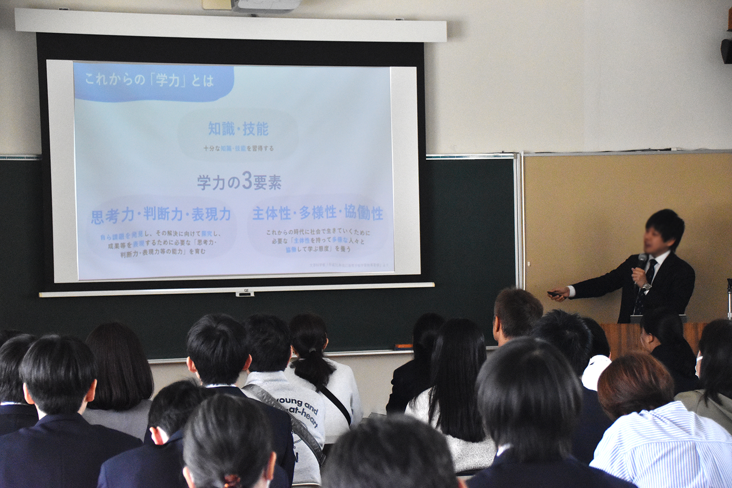 さて、今日は帰省日に合わせて、2年生は「修学旅行説明会」、3年生は「進路講演会」が開催され、多くの保護者の皆さまも参加されました。